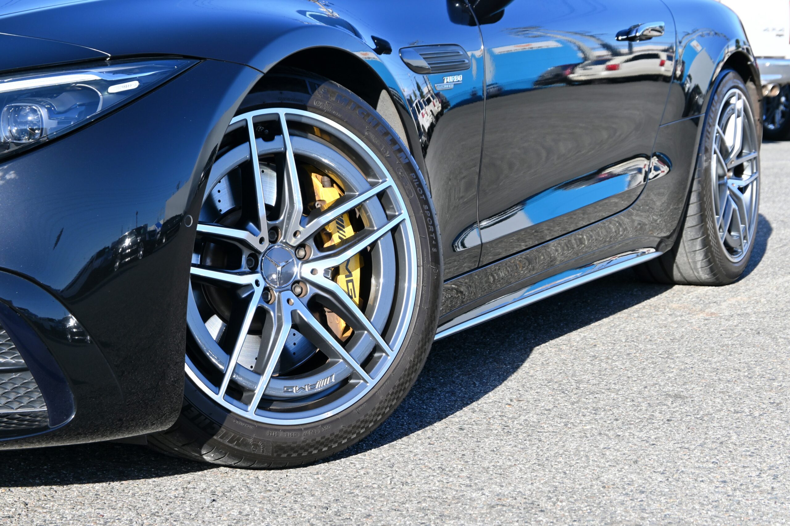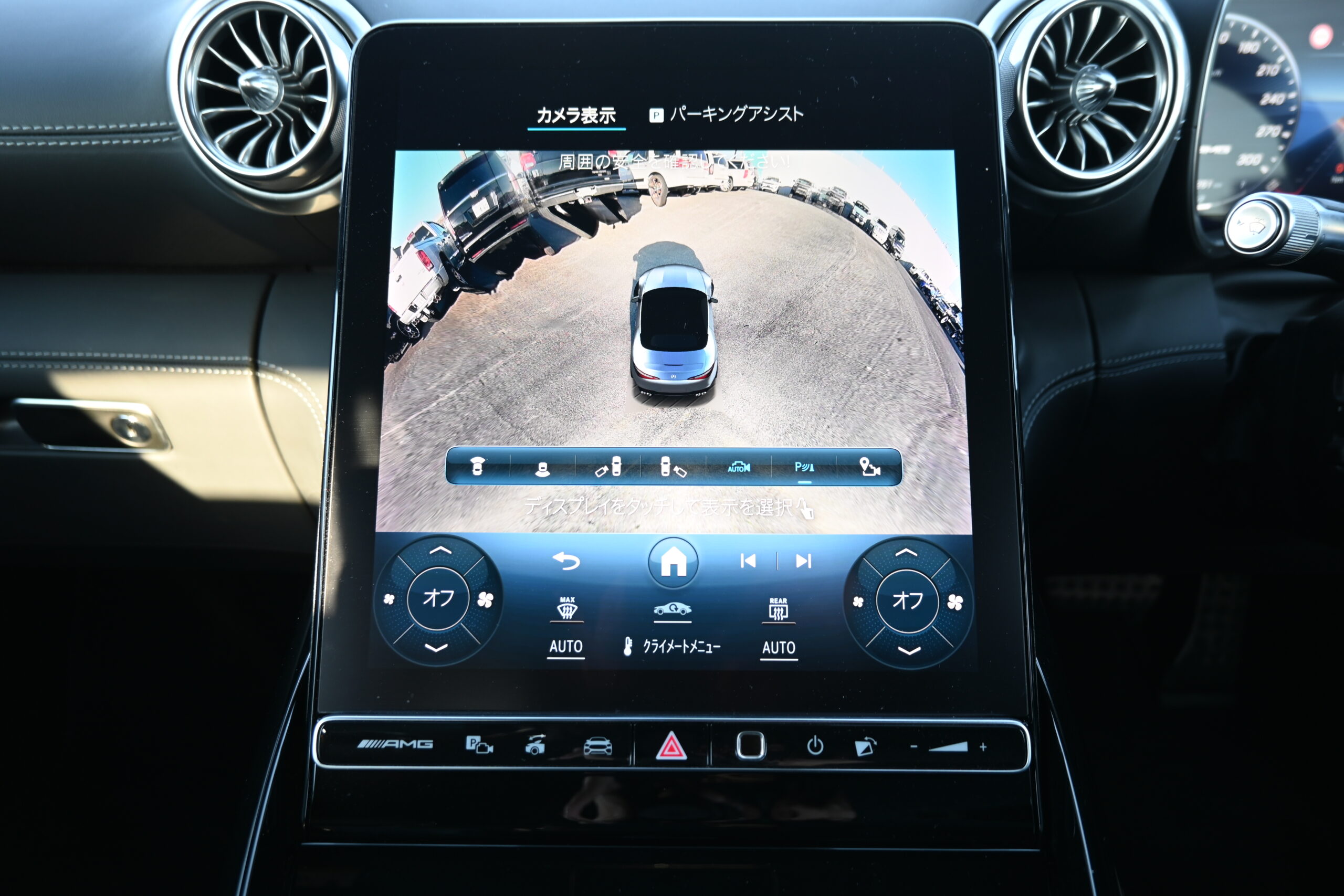 目を引く レッドトップに AMGイエローキャリパーで、見た目のインパクトも抜群。