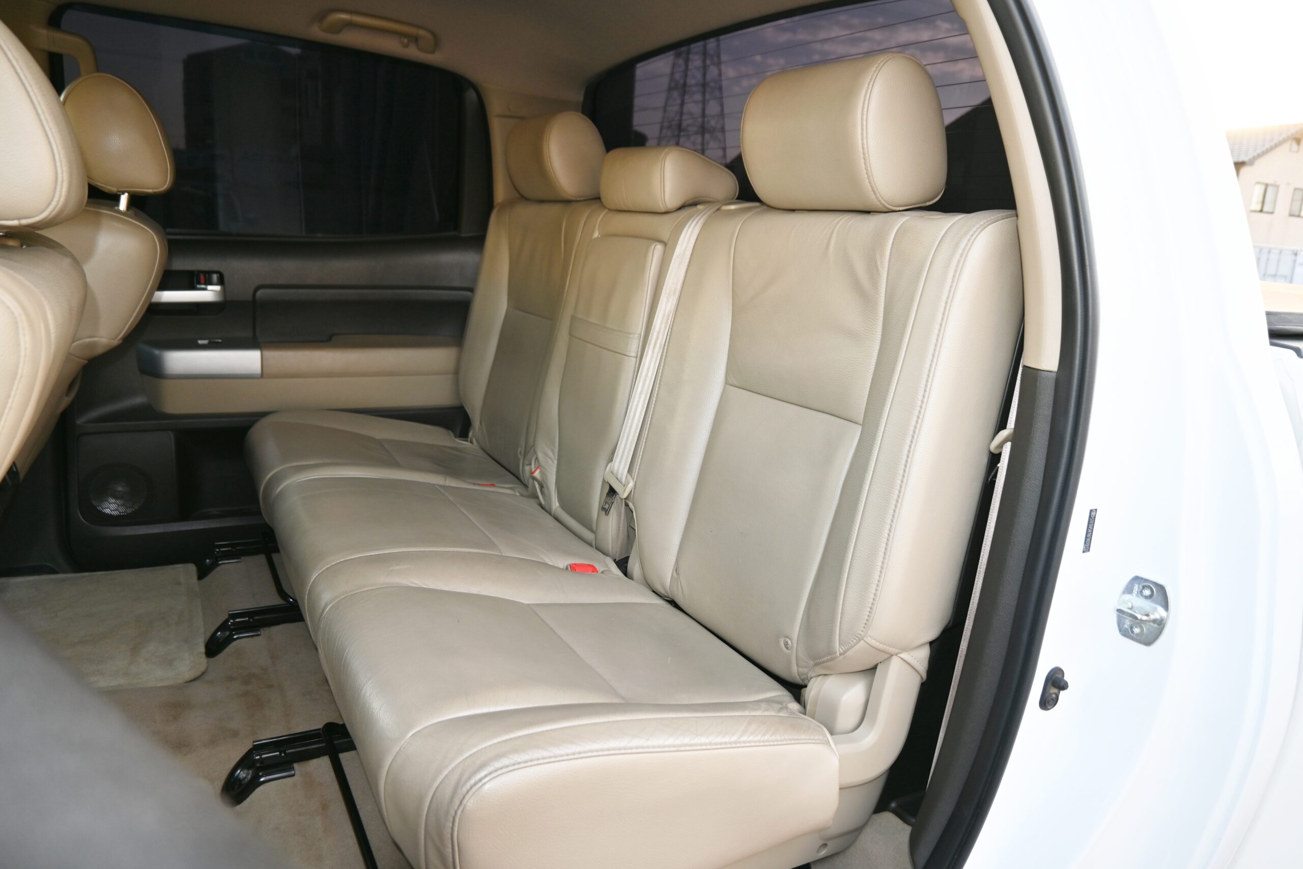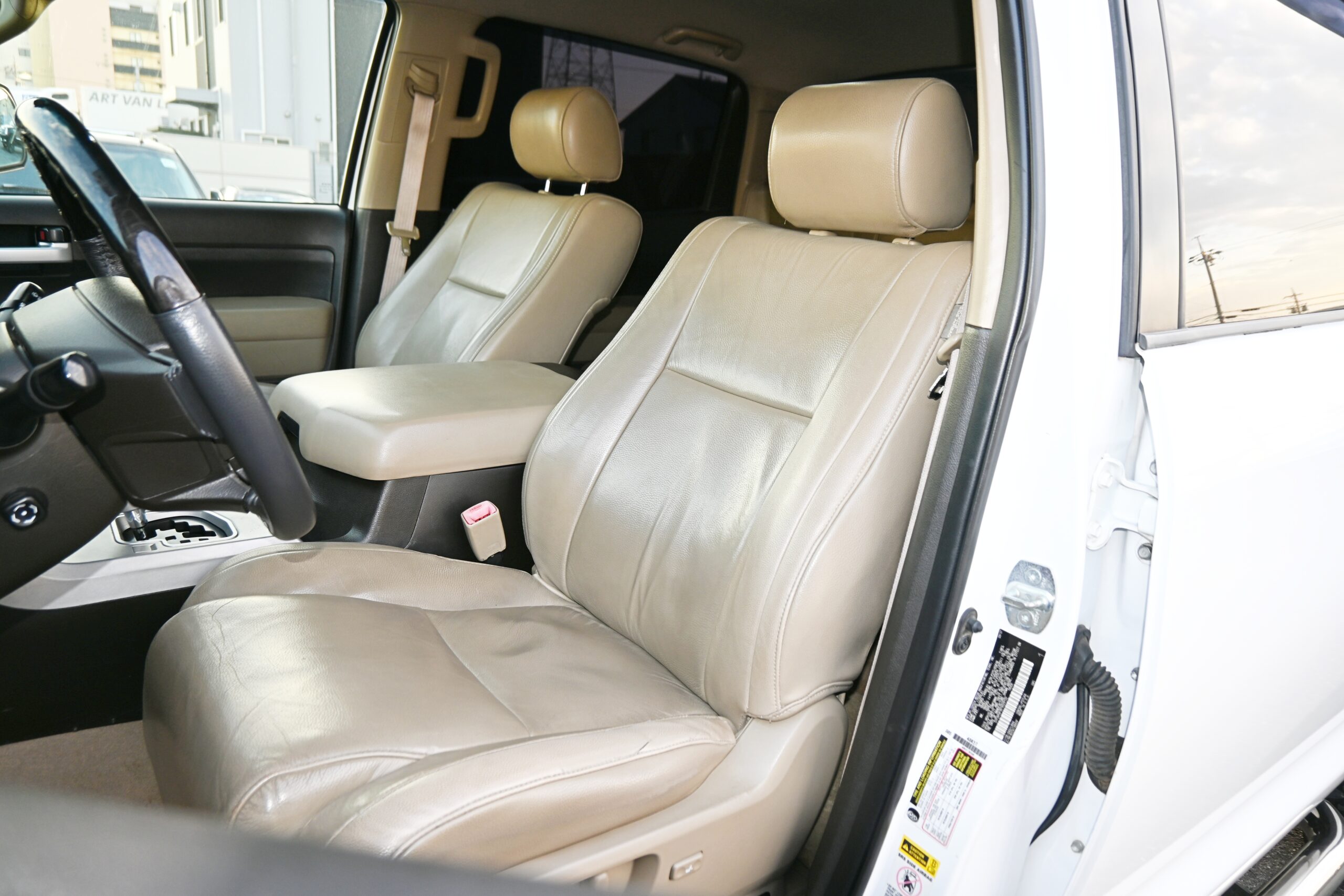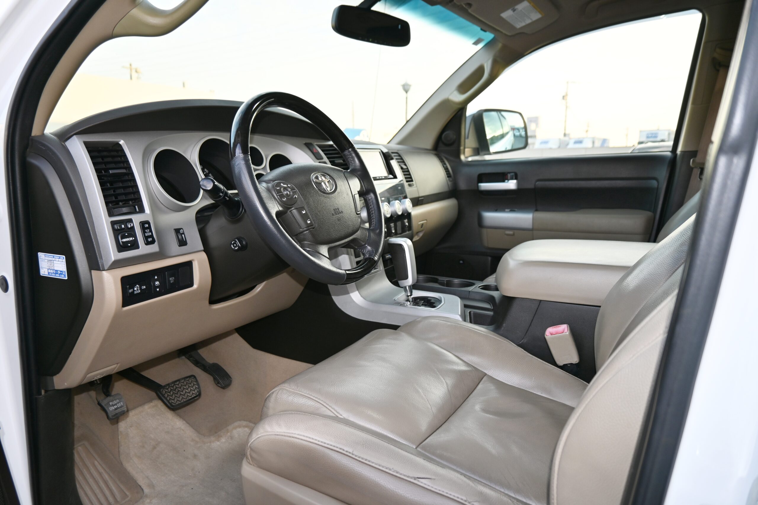 内装は落ち着いた ベージュ本革シート。シートヒーター&パワーシート付きで、長時間のドライブも快適です。