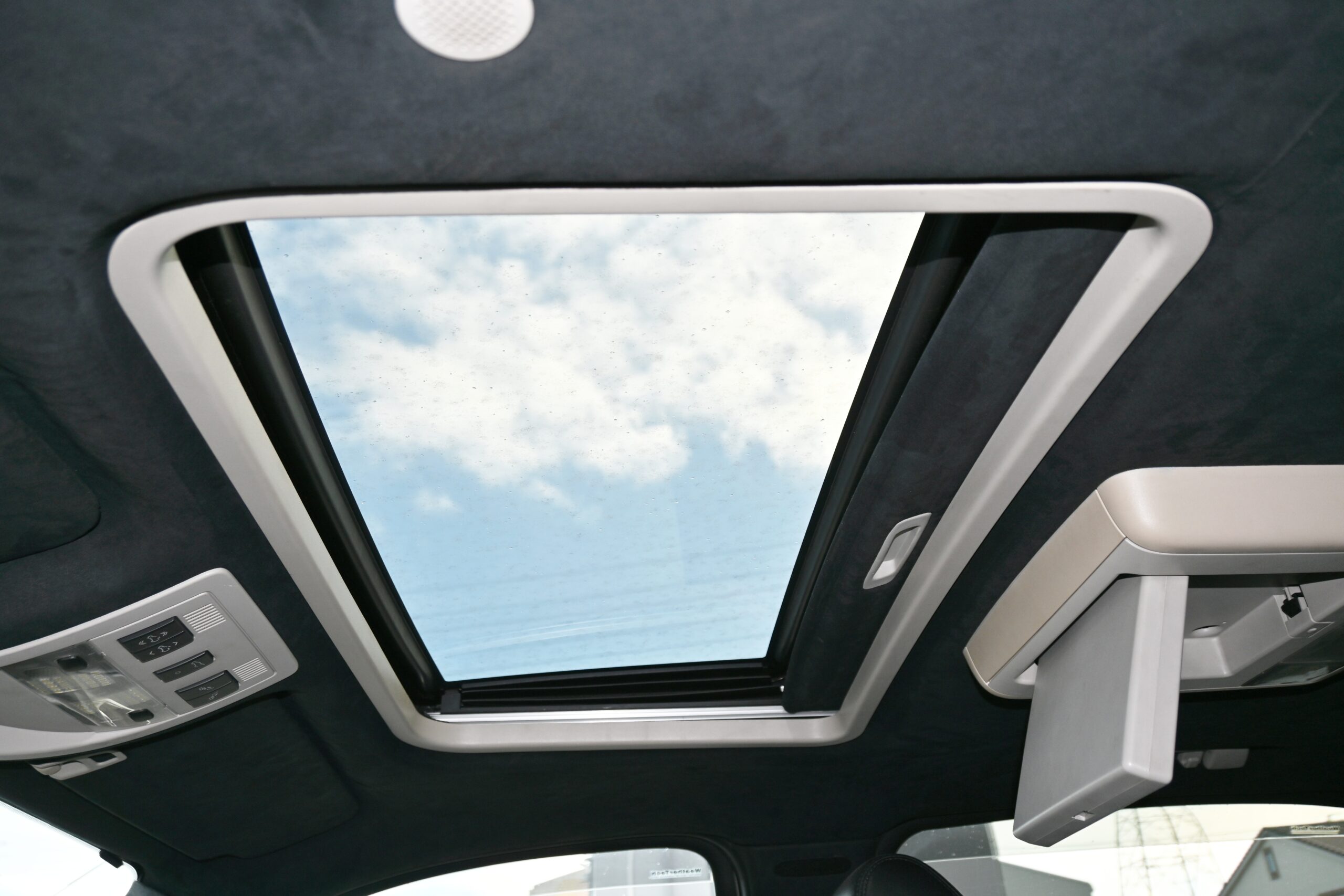 内装は高級感ある 黒本革シート。サンルーフ付きで開放感も◎視認性バッチリの LEDヘッドライトも装備。