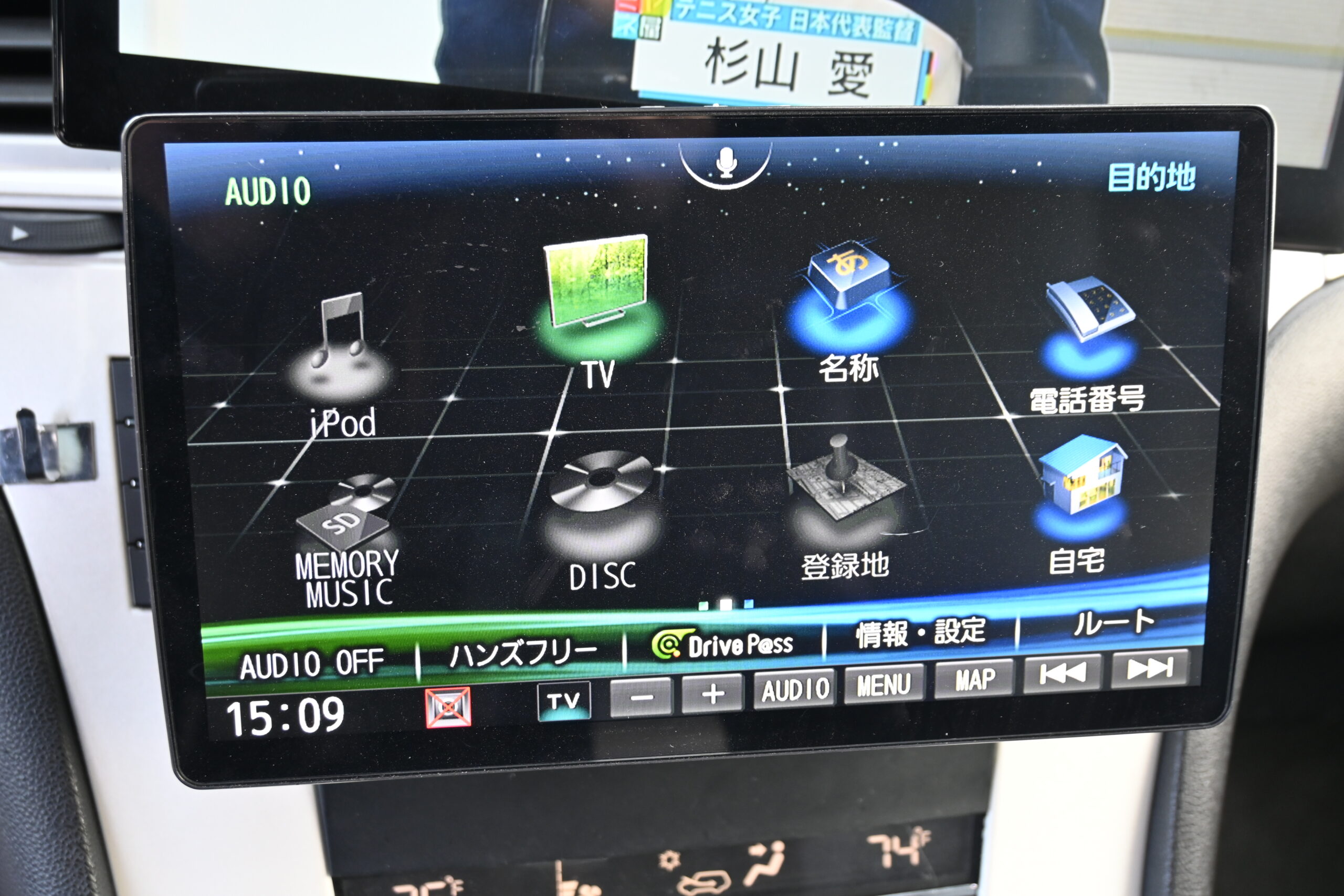 装備面もかなり充実していて、ストラーダ11インチ フローティングナビ、バックカメラ、ETC搭載。さらに後席の方も楽しめる ツインモニター&ツインフリップダウンモニター付きでロングドライブも快適です。